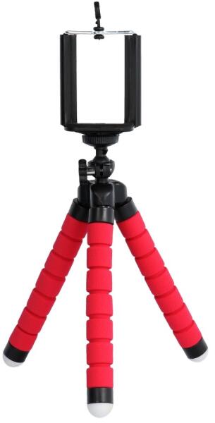 HFMTS 0028 - Piros Mini rugalmas tripod (csatlakozó nélküli) - az Ön tökéletes felvételeihez, mely tartós és erős műanyagból készült. Rendkívül hajlékony és rugalmas. A 360°-os gömbfej lehetővé teszi, hogy bármilyen szögben beállítsa a megfelelő felvételt. A talpak csúszásmenetesen kialakítottak, így telefonja vagy fényképezőgépe biztonságosan helyezkedik el. Az 1/4 csavar lehetővé teszi az eszközök közvetlen csatlakoztatását. A tartó akár 7,5 cm széles telefonokra is alkalmas.