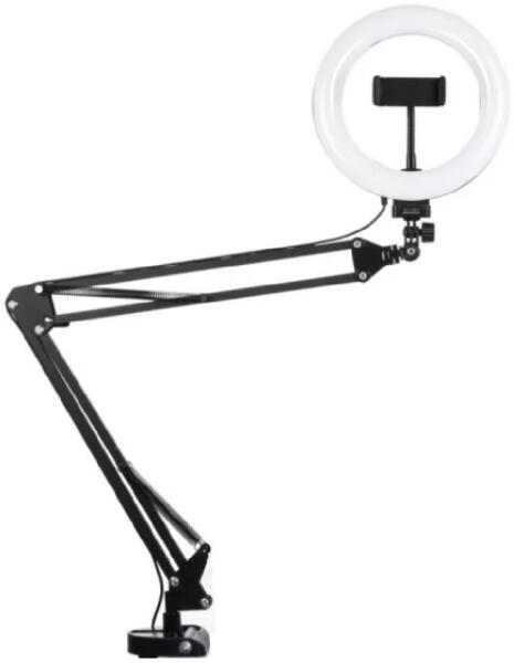 PULUZ 20 cm LED ringlight körfény kör lámpa + 65 cm Asztal lapra rögzíthető állítható állvány kar + Telefontartó20 cm-es LED videólámpa / gyűrűfény asztali 65 cm hosszú állítható tartó karral - tökéletes választás videoblogoláshoz videocsevegésekhez, közösségi médiához, professzionális fotó munkához, videók vlog készítéséhez! A kör design-nak köszönhetően fotózás, videózás esetén az arcot egyenletesen világítja meg a szemben gyűrű fény tükröződést létrehozva. A tartó kar lehetővé teszi asztali körülmények között is az ideális döntés és állítást. Szerelhető telefon - kamera tartó a gyűrűfény közepére.