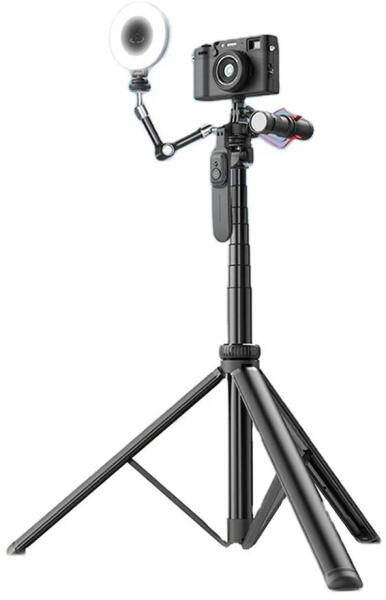 Techsuit - Szelfibot (C05) - Nagy állítható állvány Bluetooth távirányítóval, 360 fokos, alumínium ötvözet, 205 cm - Fekete