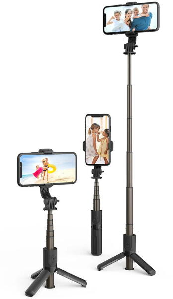 Techsuit - Mini Selfie Stick (L10) - Stabil állvány Bluetooth távirányítóval, 360 fokos elforgatás, alumíniumötvözet, 68 cm - fekete
